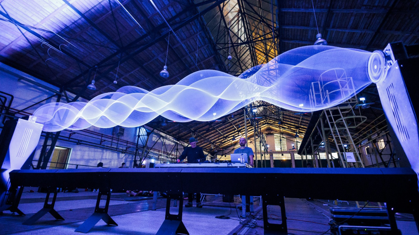 Bora: Bora creëert een zintuiglijke witruimte: een welkome onderbreking van visuele prikkels. Dit werk ervaar je niet via een visueel spektakel, maar door middel van luchtbewegingen die zowel voelbaar als hoorbaar zijn. Je wordt uitgenodigd om contact te maken met je zintuigen buiten je ogen om.