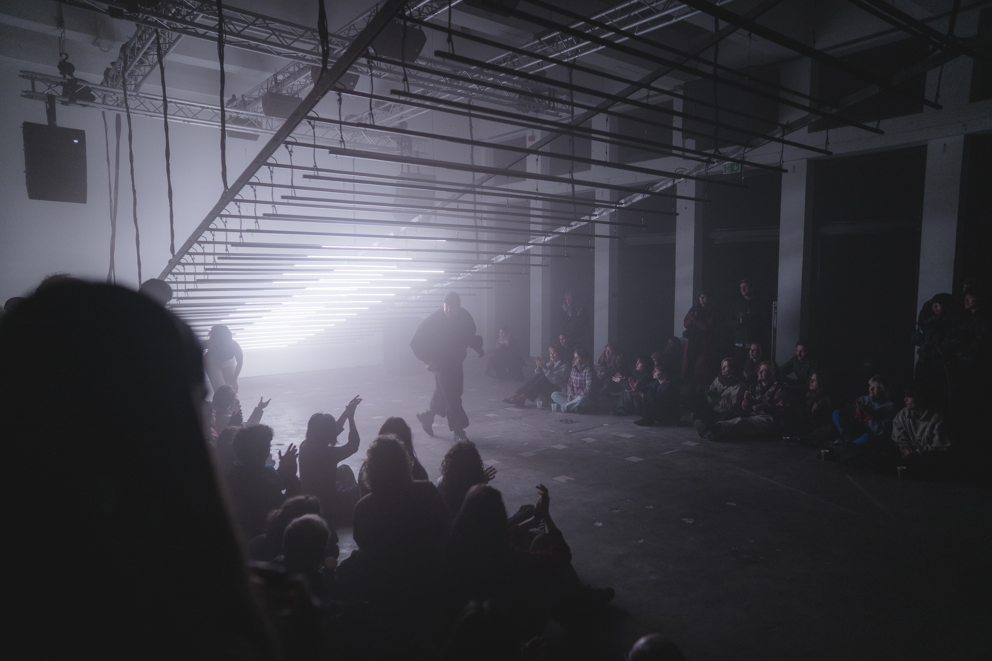 The first Performance Night was hosted during the STRP: Kaleidoscopic Futures. November 22nd was a night where body, sound, and space fused together in a way that can only be described as the highlight of the festival. During the performance, the movements of dancers were captured by microphones and translated to sound and light, which then in return inspired the dancers to react. This created a unique composition in which the audience, artists, and technology fused together.